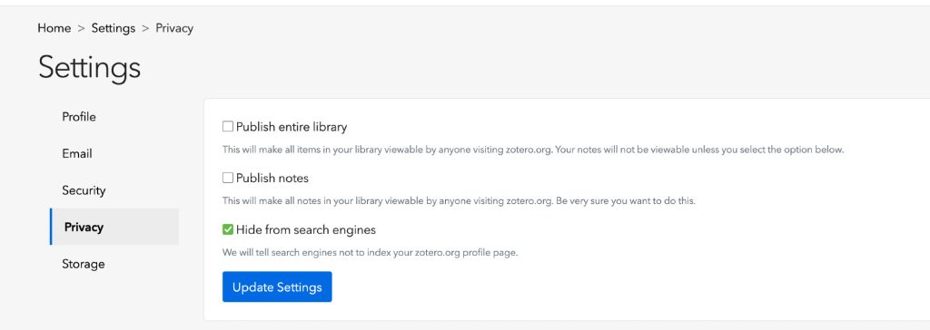 Personally I’m going to keep using Zotero – it works, I love it! – but I’ve set my account to private. Check your Settings.